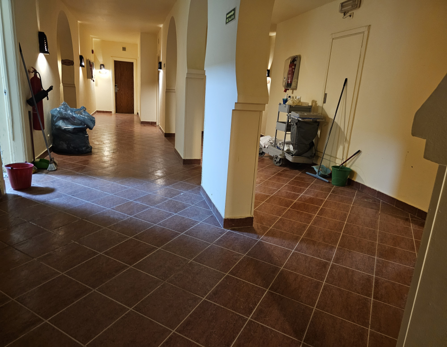Am stat la 7216...mobila invechita si jerpelita,macar sa o dea cu baiț/lac,se poate recondiționa, am avut baie pentru persoane cu dizabilitati cu toate ca încă nu avem nevoie de acest serviciu, in ,,cabina de dus"baie despartita de un zid cu faianta veche si chiturile la rosturile faiantei in ,,cabina de duș" destul de inegrite si jegoase. Pe perete se vedeau gaurile de la dible ca aculo fusese candva un dispenser de șampon,gel de duș, alte gauri de la un fost suport de accesorii de duș. In baie un mic sapun sigilat de 5×6 cm ,singurul sapun pentru 7 nopti,iar sampon cate 2,3 bidonase de 30ml,care iti mai dadea daca mai cereai, cel cu curatenia venea spontan dupa ameaza cand stateai in camera si batea la usa insistent pentru ati mai da un prosopel patrat xe pus jos in baie ,chipurile poate îi dai și lui ceva.